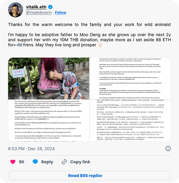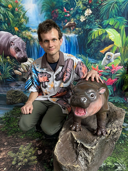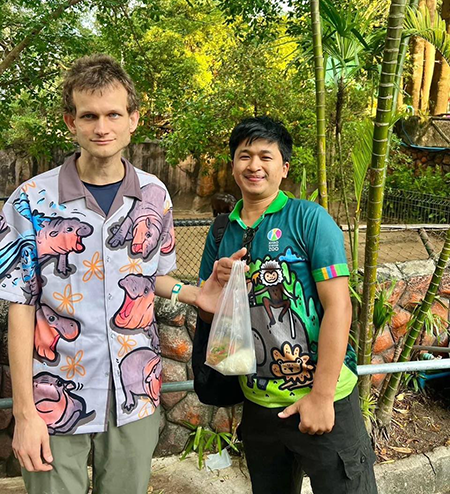 Vitalik Buterin, the creator of Ethereum and a cryptocurrency billionaire, visits Moo Deng at Khao Kheow Open Zoo.